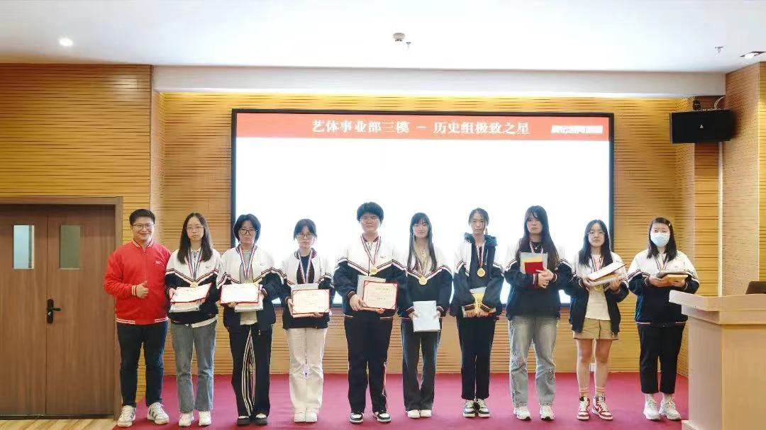 ▲物理组极致之星上台表彰(全校物理组排名前10名)▲