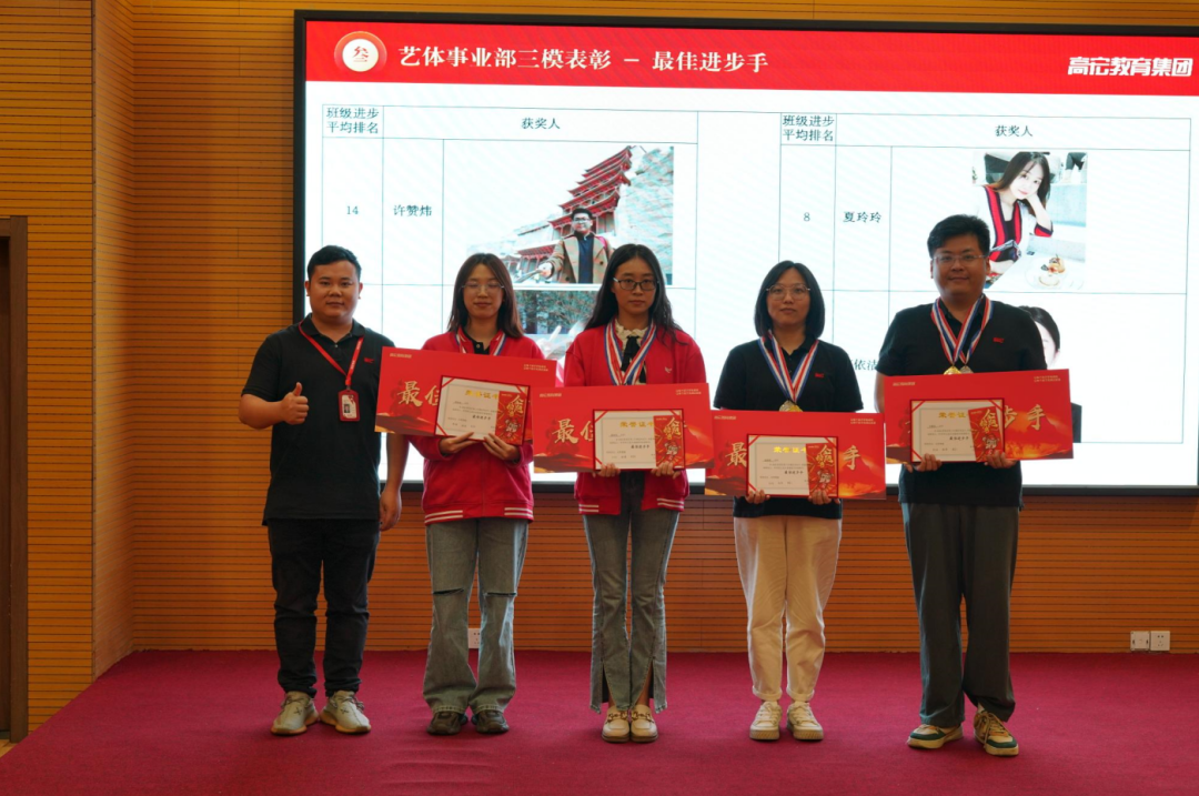 得分王表彰 夏玲玲老师所带班级语文单科进步17.52分,荣获全校最佳得分王一等奖,获得个人奖金3000元; 张其炜老师所带班级语文单科进步13.4分,荣获全校最佳得分王二等奖,获得个人奖金1000元; 许赞炜老师所带班级语文单科进步8.9分,荣获全校最佳得分王三等奖,获得个人奖金500元; 杨婷婷老师所带班级语文单科进步3.8分,荣获全校最佳得分王三等奖,获得个人奖金500元。 ![]() 最佳进步手表彰 傅爱珍老师所任教班级三模中排名进步7名; 应福彬老师所任教班级三模中排名进步7名; 林平老师所任教班级三模中排名进步7名; 王新颖老师所任教班级三模中排名进步7名; 高依洁老师所任教班级三模中排名进步8名; 夏玲玲老师所任教班级三模中排名进步8名; 杨婷婷老师所任教班级三模中排名进步11名; 许赞炜老师所任教班级三模中排名进步14名; 恭喜以上老师荣获全校最佳进步手,获得个人现金奖励。