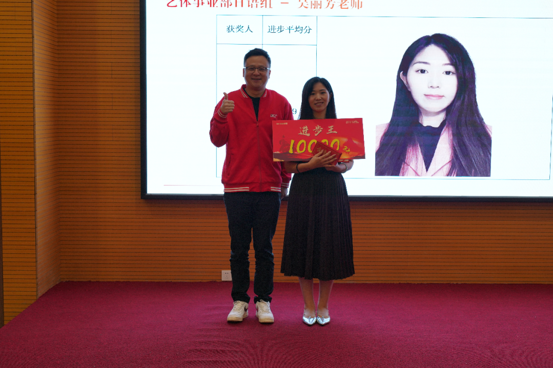 最佳突击手表彰 吴雅楠老师荣获最佳突击手——三模考试中全校进步最大的班级,获得班级奖金1000元。