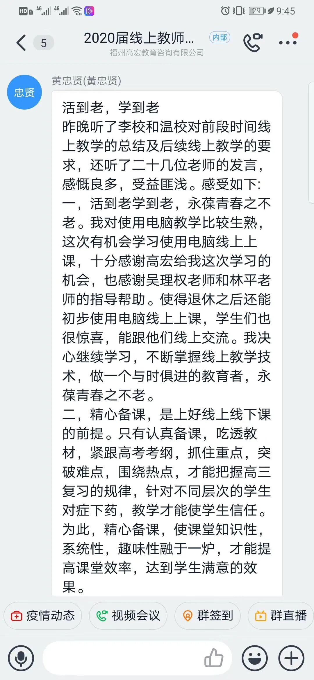 没有一个冬天不可逾越,没有一个春天不会来临。在疫情严峻时刻,高宏是奋进者,奋斗的人生最美丽,奋斗的脚步因在灾厄中前行而更加沉稳,高宏的步伐因经历了独特的2020而更加坚韧。 正如李寿山校长所说的:持续精进,成为一个有方向的奋斗者,成为一个可以真正呵护孩子们的价值者。面对孩子,我们责无旁贷,我们更要让自己成为一个可以依靠,值得学生家长托付的人。 教育的万种可能、学生的万般可爱、教师的万分可敬,皆在于用心对待每一颗赤子心,珍惜当下每一分时光并发奋耕耘。 ![]() 坚定打造线上教学精品 在这种特殊的时候,唯有凝心聚力、追求卓越,才能为学生带来高质量的线上教学。 高宏线上事业部产品中心,在李校长、邵副校长、温副校长、郑副校长的带领下,组织了54位线上教学老师,进行了2.5小时线上教学精进交流,践行高宏极致文化中“交”,深入交流共同精进。 上下同欲,极致交。感谢各位老师的付出,守护孩子梦想,坚定打造线上教学精品,我们一起努力! ![]() ![]() ![]() ![]() 坚持专业,绝对用心 老师们也有着丰富的经验,在备、教、导、查的各个环节里,都有着常年累月积累出来的教学艺术,并乐于分享,相互成就。 专业是一种力量。这次的交流围绕着“考什么、怎么考,讲什么、讲到什么程度、怎么讲高效”进行深入的探讨。思想火花的碰撞,往往能带来更好的提升。