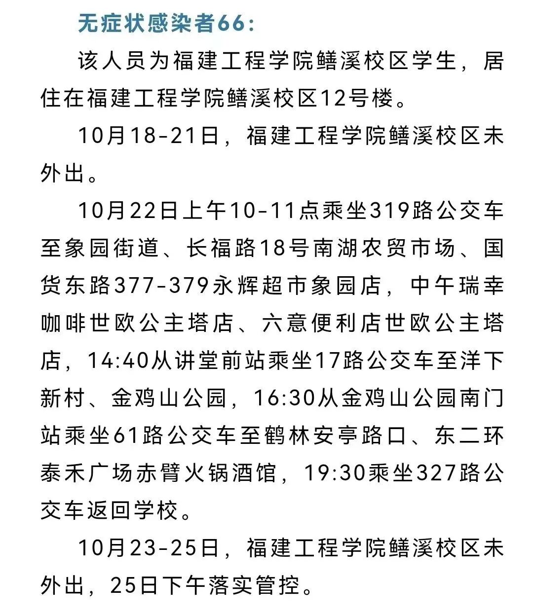其中无症状感染者66为福建工程学院鳝溪校区学生,居住在福建工程学院鳝溪校区12号楼!