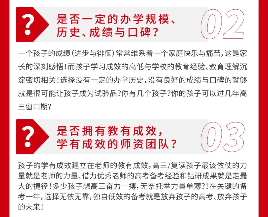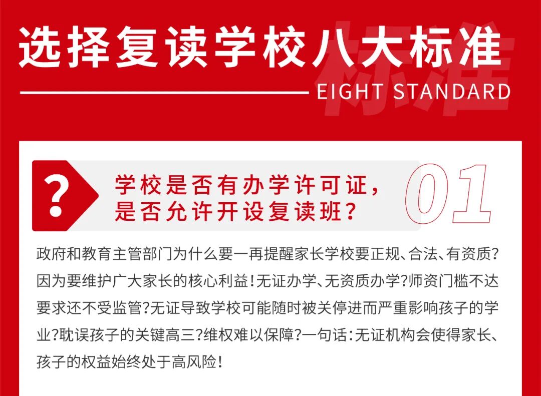如何选择一所靠谱的复读学校? 但你决定复读以后,选择一所靠谱的复读学校也是至关重要的,一所好的能够最大限度的为你助推,为你一年的复读冲刺保驾护航,高宏为大家罗列了选择复读学校的八大标准: