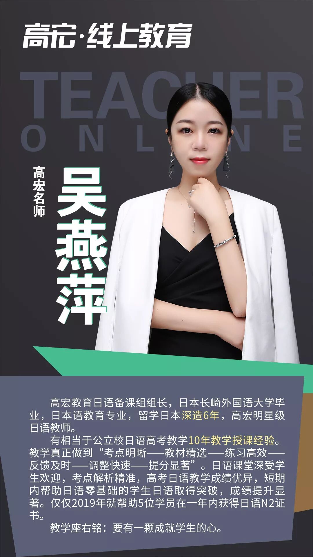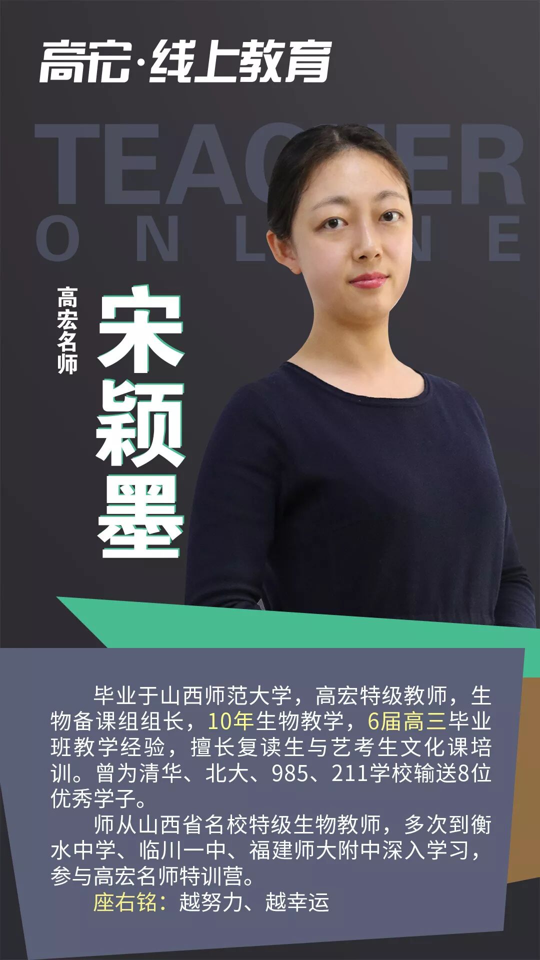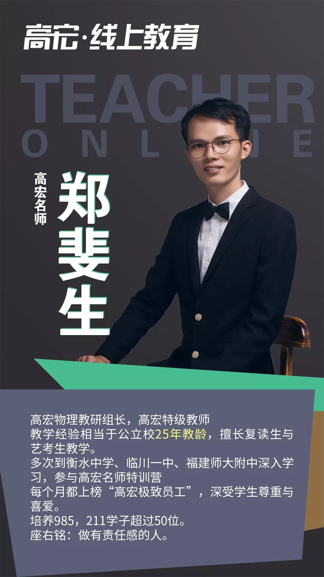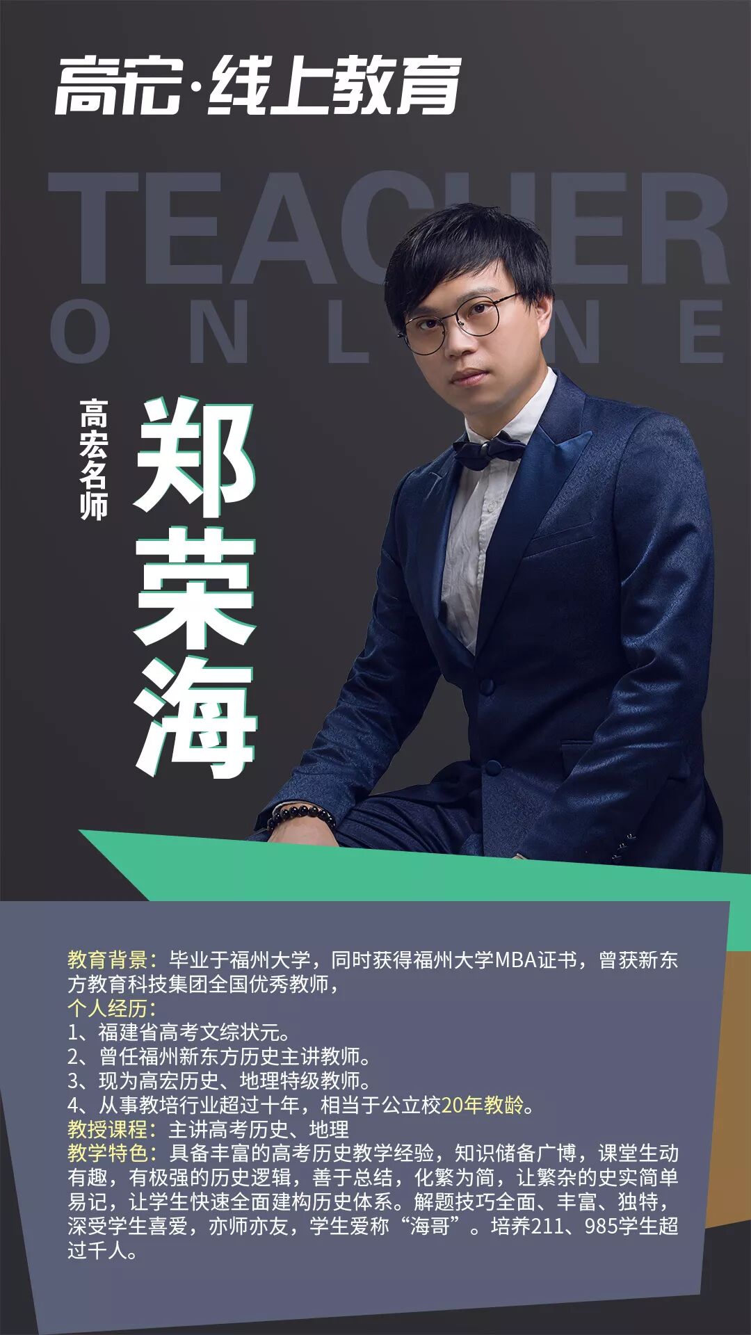 03 随时随地,在家学习 在本次疫情的情况下,注意尽量减少外出,不要去人流密集的场所。高宏线上课程,跨越时间和空间的限制,提高时间效率!在家即可保证学习进度和学习质量,不用担心停课对学习进度的影响。 04 课程直播+回放 线上课程全部采用直播模式,所有课程均可在半年内回放,让学生听懂为止。在线和面授高宏课程内容同步,进度、难度、教材教具都与面授一致。 05 限时免费上课 1月29日到1月31日限时免费上课,高宏“线上教育”打造全国优质线上艺考文补品牌。 二、高宏师资队伍介绍 高宏教育是经教育局批准成立的正规教育培训机构,始终秉承“让每个学员学有成效,让每个学员充满正能量的”的办学理念,执行“在喜悦中追求卓越”的教育思想。高宏旗下四大校区:福州大学城校区、福州高新区龙旺校区、福州高新区万达校区( 筹备)、江西南昌校区,合计面积55000多平米。先后获得福州市优质师资诚信校、福建省教育厅亲授爱心学校等;现有全职教职人员近300名,并聘请教授、原中高考命题组组长、特级教师担任我校教学顾问,办学多年,办学成效获得家长与学生的广泛认同,每年培训2000多名中高考全日制学员。 在日常教学中,教研组各科目老师坚持集体备课制度,每个科目都有十几个教师分模块研究,每周至少用两节课的时间,定时、定点、定内容、定主讲人,发挥集体智慧,深入研究教材。坚持听课制度,互相汲取营养、丰实自己,并定期在教研活动中针对常规课、拓展课及各项组内讲座、外校听课进行反馈。 线上课程名师介绍 ![]() ![]() ![]() ![]() ![]() ![]() ![]() ![]() ![]() ![]() ![]() ![]() ![]() ![]() ![]() ![]() ![]() ![]() 三、如何参与线上课程 高宏全面上线网络课程,确保学生不落下高考冲刺课程,全体班主任和科任老师每天都会隔着屏幕监督你们,我们一起为了高考冲起来!让我们一起努力,完成学业的弯道超车,赢在学业和心态上,越是艰难,越是努力。 2