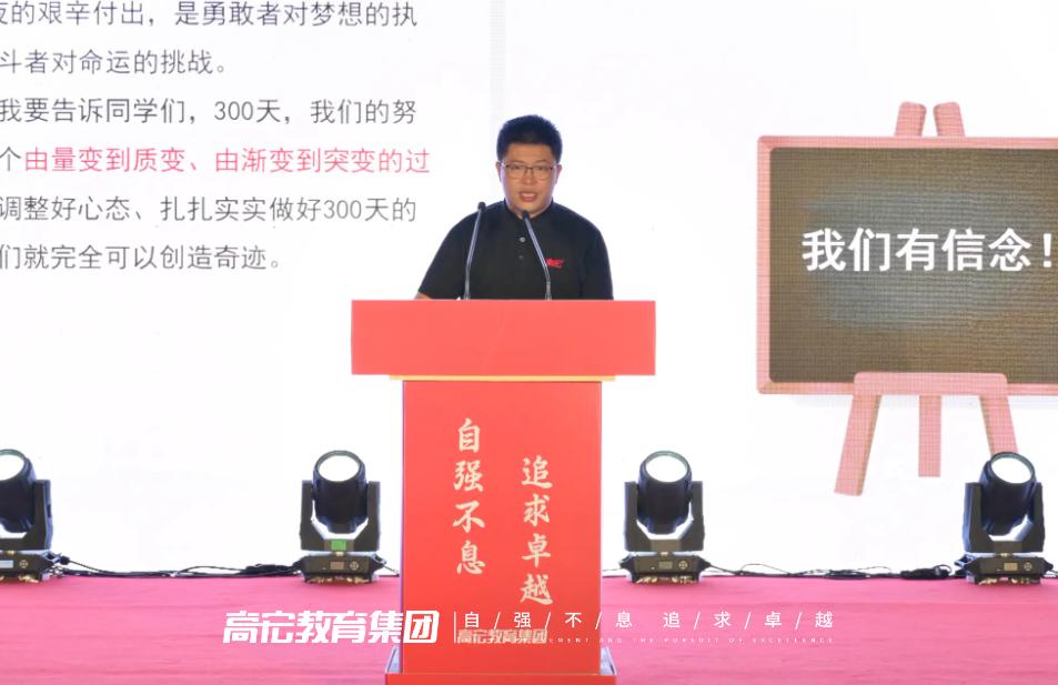 启航追梦 · 共铸辉煌|高宏教育2026届高三迎新晚会,点亮奋斗星光发表时间:2025-08-26 14:26 夜幕降临,星光点点,福州高宏万达校区洋溢着青春的活力与梦想的激情。2025年8月24日晚,“ 启航追梦 · 共铸辉煌 ” 高宏教育2026届高三迎新晚会隆重举行。这不仅是一场迎新盛典,更是点燃梦想、凝聚力量的启航仪式,标志着2026届高三学子冲刺高考的新征程正式开启! ![]() 晚会在主持人许赞炜老师充满激情的开场中拉开帷幕,他向所有怀揣梦想的高宏学子致以热烈欢迎,现场灯光璀璨,气氛热烈。校领导、各科任老师及班主任老师亲临现场,他们的目光饱含对新生的期许,共同开启新征程,彰显了高宏教育对学生成长的高度关注与无私投入。 ![]() ﹀ ![]() ![]() 在学子们即将踏上征程之前,一盏明灯已然指引方向。福州校区教学校长黄世雄登台致辞,他用坚定而富有感染力的话语,为2026届学子擘画了全年的备考复习蓝图。 黄校长首先肯定了2025届学子们在高考中取得的辉煌成绩,特别提到了唐垚飞同学考入复旦大学、薛致朋同学被西安交通大学录取等喜人成果,并以此勉励大家:“ 荣誉是奋斗的刻度,未来是拼搏的坐标,宝剑锋从磨砺出,梅花香自苦寒来,那些挑灯奋战的身影是青春最铿锵的注脚。” ![]() 黄校长深入剖析了历届高宏学长学姐们成功的奥秘,并非仅仅是分数的高低,更是淬炼出宝贵的力量,他勉励2026届学子,此刻接力棒已交到手中,要以学长为镜,以时间为刃,从今日起摒弃 “ 明日复明日 ” 的懈怠,紧抓当下。“ 286天对于在座的每一名同学都弥足珍贵,所以我们没有理由错过它,更没有理由荒废它,虚度它。” 同时,他还与现场的同学们分享了 “ 三信三梦三坚持 ” 核心理念: 1 要“相信我们的相信”,坚信“有付出,一定有回报;有耕耘,一定有收获。”他强调,在高宏,只要“师生同力、家校合力、竭尽全力,就一定能够铸就我们高考的超强实力。” 2 要“梦想我们的梦想”,因为“没有梦想的学习是盲目的,没有目标的努力是徒劳的。”他鼓励同学们将大目标分解为每日、每周的小目标,用实际行动去证明和实现。 3 要“坚持我们的坚持”,告诫同学们“成功者永不放弃,放弃者永不成功。” 即使面对困难和压力,也要将它们视为“智者最完美的试金石,勇者最好的磨练。” ![]() 最后黄校长庄严承诺:“ 高宏绝不辜负每一个家庭的信任,绝不辜负每一个孩子的选择。” 他的讲话铿锵有力,为学子们注入了强大的精神力量,更彰显了高宏教育在教学与育人方面的坚定信念与责任担当。 ﹀ ![]() 聆听 “ 过来人 ” 的声音,更能激荡奋斗的决心。2025届优秀学子、考入集美大学的张鹭夷同学登台分享,他用亲身经历诠释了 “ 逆天改命 ” 的奋斗故事。张鹭夷坦言,他曾以入学时261分的成绩,最终在高考中达到了563分,实现了302分的惊人飞跃,成为名副其实的 “ 黑马 ” 。 ![]() 凭借亲身经历,张鹭夷破除了 “ 死读书 ” 的刻板印象,分享了他在高宏劳逸结合、高效学习的宝贵经验。同时,他强调了 “ 聪明地努力 ” 的重要性,而非盲目苦读:“ 你们并不是不努力,只是不够聪明的努力,你们需要更高效、更有节奏地去努力。” 随后,张鹭夷同学具体分享了独到的学习 “ 战术 ” 与 “ 战略 ” ,包括单词的深层记忆法、先攻克基础再突破难题的顺序规划,以及将时间分配给 “ 提分最快 ” 科目的智慧。他鼓励大家积极主动地向老师请教,做到 “ 学会对老师死缠烂打,对问题应该有一种打破砂锅问到底的实干精神。” 他的分享真实、接地气,既提供了可操作的学习方法,更传递了积极的心态,展现了高宏师生紧密配合的学习氛围,让 “ 逆天改命 ” 不再是神话,而是可以复制的成功路径。 ﹀ ![]() ![]() ![]() 奋斗者是青春最亮的底色!为激励在开学初期就展现出拼搏精神的优秀班级和个人,晚会隆重举行了表彰仪式。虽然才开学两周,但高宏学子们已然展现出饱满的学习热情和拼搏风采。三星班级175班、四星班级172班、五星班级177班获得了 “ 优秀班级 ” 荣誉锦旗,同时,172班王艳丽、177班单琦芬、175班徐宏三位班主任荣获 “ 优秀班主任 ” 称号。邵晨成校长和吴理权校长亲自为获奖班级和班主任颁奖,并宣布了特别奖励,这份贴心奖励赢得了阵阵欢呼。 ![]() 此外,学校还向一批迅速进入状态、专心学习的同学授予了 “ 最美奋斗者 ” 荣誉称号,并颁发 “ SCC校长特别奖 ” 礼品。这些被表彰的学子是榜样,是光芒,他们用实际行动诠释了拼搏的价值,也彰显了高宏教育在激发学生潜能、打造良好学风方面的卓越成效。荣耀时刻,掌声雷动,每一份荣誉都致敬着学子们的付出,也激励着更多人向榜样看齐。 ﹀ ![]() 在高宏,学子们从不孤单。教师代表林建江老师和2026届新生代表翁辰妤同学的真挚发言,温暖了整个会场,深刻诠释了 “ 同心同行 ” 。 ![]() 教师代表林建江老师带来深情寄语。他坦诚地指出高三之路的艰辛与挑战,理解同学们 “ 汗水与泪水每天都有 ” 的付出,以及可能在食堂角落、被窝里偷偷流泪的煎熬。但他坚定地承诺,高宏拥有一支 “ 非常优秀,非常专业,非常极致的教师团队,是学子们的坚强后盾,同行者的引路人,更是高宏的资源库。” 他强调:“ 只要你们有需要,不管在任何时候、任何地点,老师们都在。” 林老师的话语饱含深情,让学子们感受到高宏不仅传授